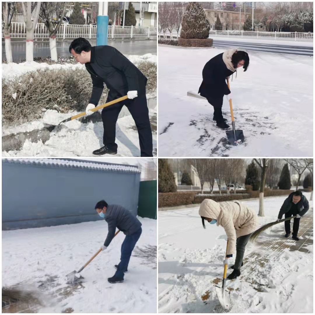 上午,大家不畏严寒,克服交通不便困难,按照办机关党支部通知要求,迅速在责任区域集结到位,对区域内主要通行道路积雪进行清扫、对积雪较厚碾压成冰的路段进行了铲冰,更好的方便了行人与车辆通行。