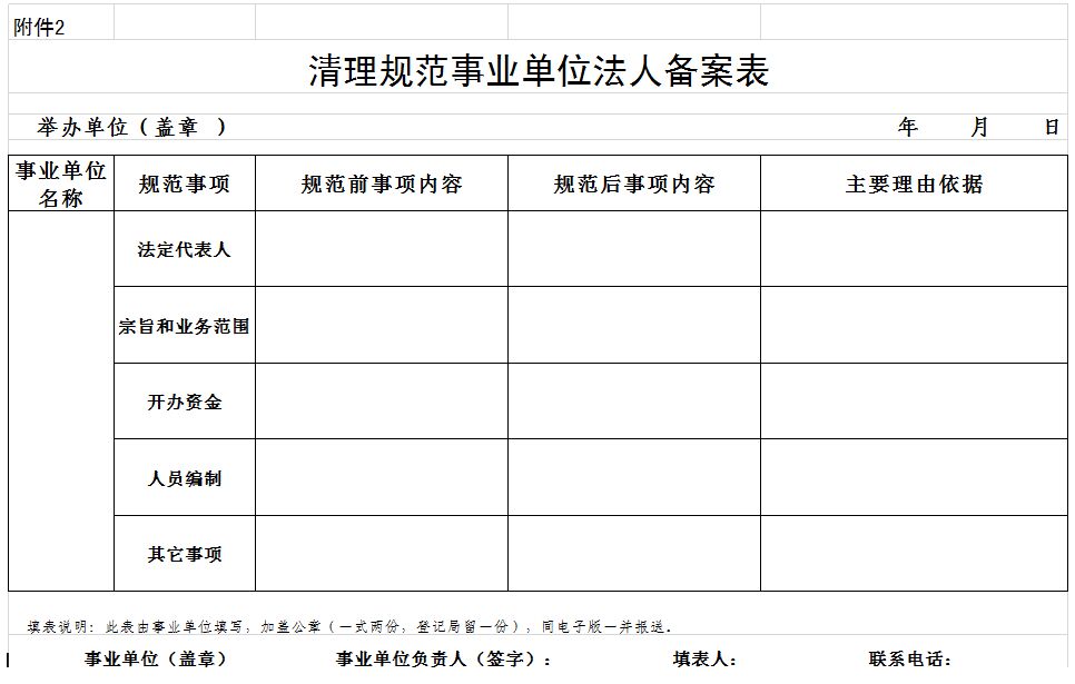 2.清理规范事业单位法人备案表