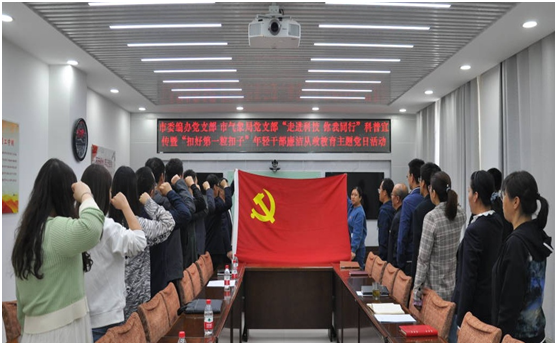 与会党员集体学习了习近平总书记在庆祝中国共产主义青年团成立100周年大会上的重要讲话精神,重温了入党誓词,参观了市气象台和雷达站;嘉峪关市“三八红旗手”任桂萍同志作了“年轻干部健康成长”主题报告,党员结合各自工作实际开展了座谈交流。