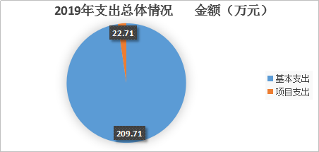本部门2019年度支出合计232.44万元,其中:基本支出209.71万元,占90%; 项目支出22.73万元,占10%。