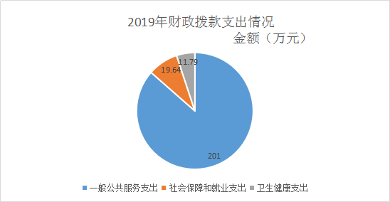 本部门2019年度财政拨款收入233.27万元,其中一般公共服务支出201万元,占总收入的86%;社会保障和就业支出20.60万元,占总收入的8.4%;卫生健康支出11.80万元,占总收入5%。