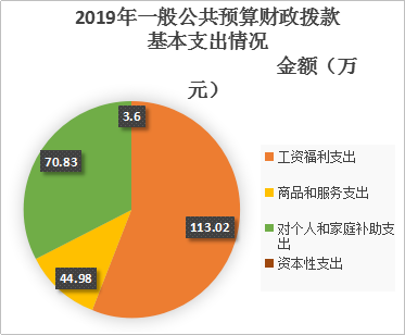 一般公共预算财政拨款基本支出中,工资福利支出113.02万元,商品和服务支出44.98万元,对个人和家庭补助支出70.83万元,资本性支出3.6万元。