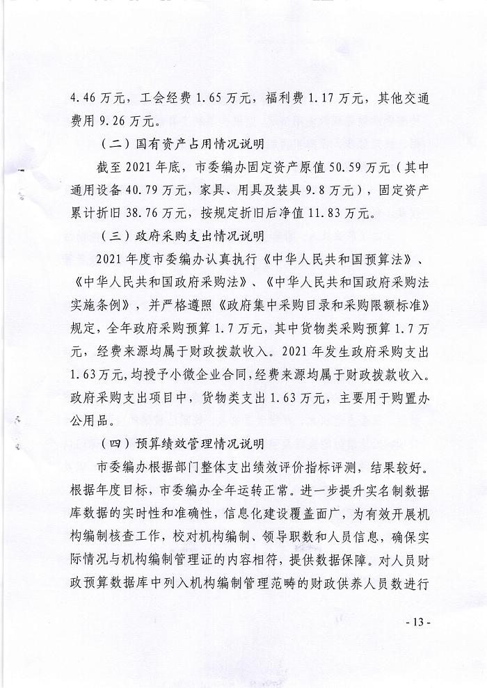 2021年度部门决算信息公开情况的说明