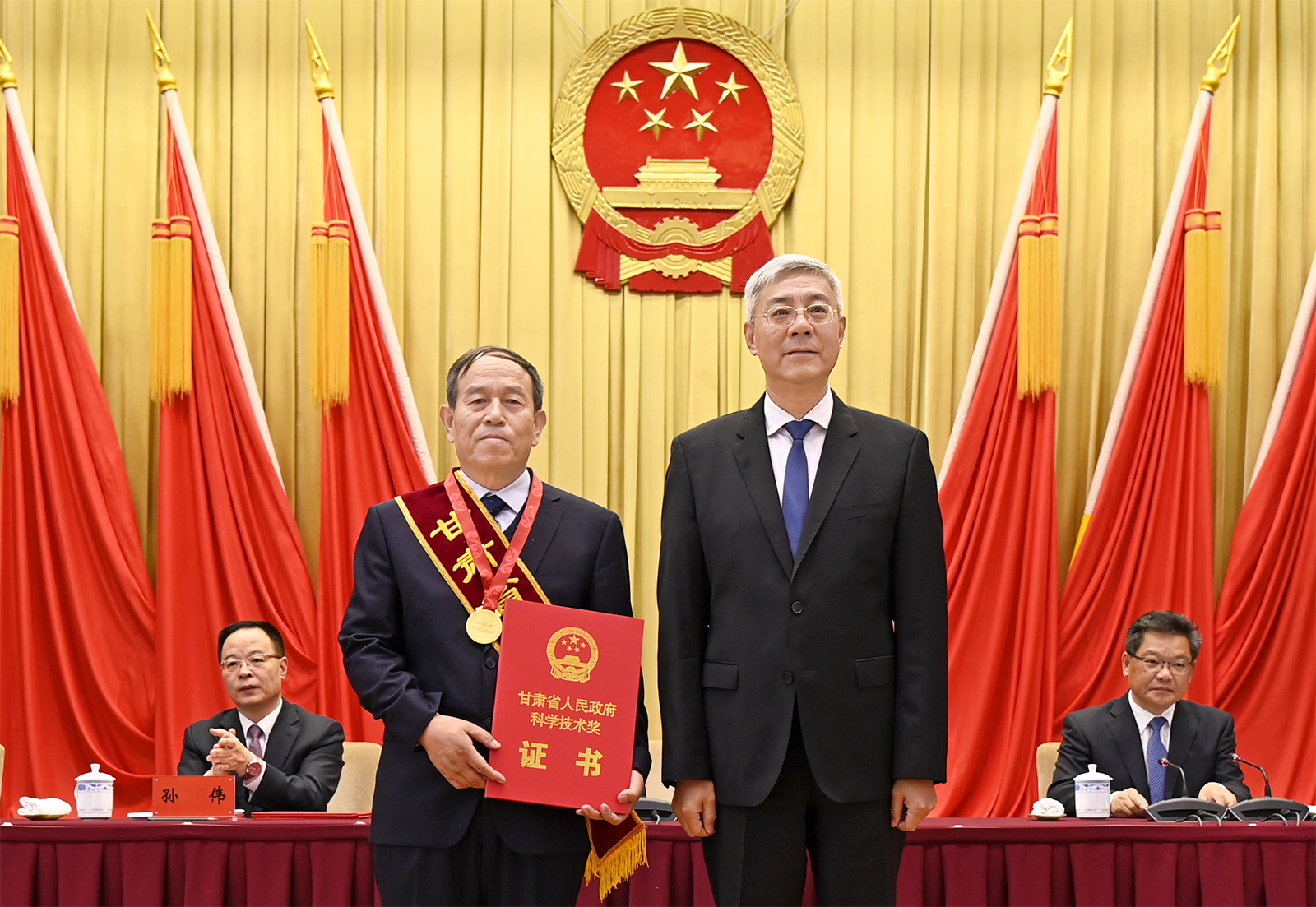 省委书记、省人大常委会主任尹弘出席会议并讲话,省委副书记、省长任振鹤主持。省领导孙伟、李元平、王嘉毅、吴明明、郭天康,兰州大学校长严纯华出席。副省长张世珍宣读奖励决定。