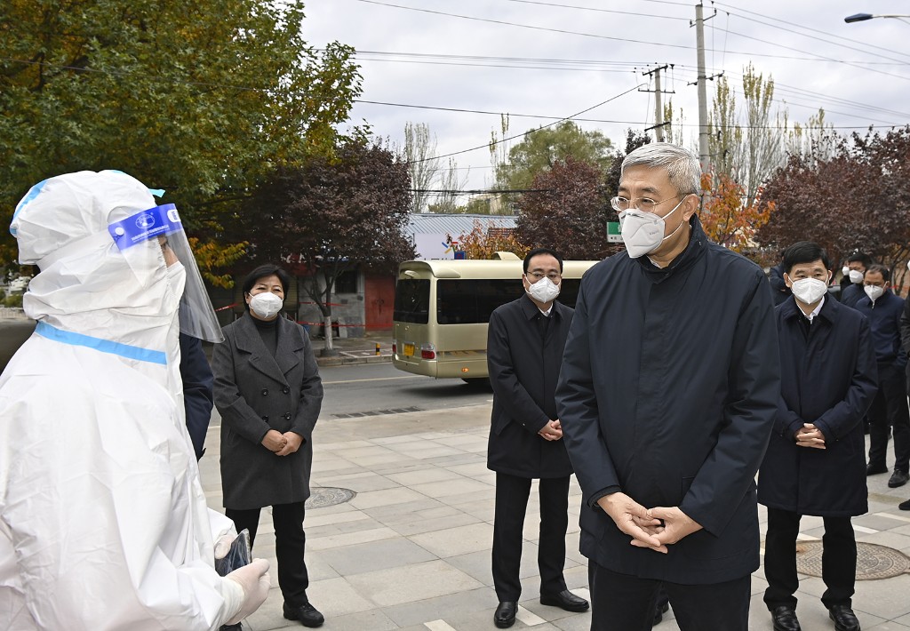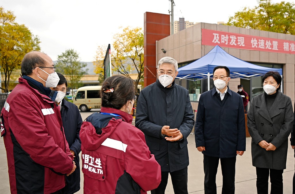 省委书记、省疫情联防联控领导小组组长尹弘11月4日在天水市调研督导疫情防控工作,看望慰问一线工作人员。他强调,要深入贯彻习近平总书记关于疫情防控的重要指示精神,认真落实孙春兰副总理在我省调研时的讲话要求,增强大局意识和全局观念,压紧压实各方责任,从严从细筑牢坚固防线,确保在最短时间内有效遏制疫情蔓延。